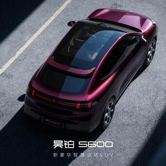 【提供纯电/增程双动力,昊铂S600官图发布】4月10日,昊铂S600官图正式发布,新车定位中大型SUV,提供纯电与增程两种动力版本,采用5座布局,此次亮相的专属车色为“茱比莉红”,是介于正红与酒红之间的独特紫色。新车外观延续家族化设计,配备融入H标识的山海之境大灯、主动进气格栅及双真风道,车身采用前低后高的俯冲姿态,搭配立体臀线、宽体车尾包围与前双活塞固定卡钳,运动感突出。尾部搭载H形贯穿式ISD智能交互尾灯,内置836个神箭标发光矩阵,支持个性化动态灯语并可OTA升级9款样式。动力方面,增程版搭载1.5T发动机,发动机最大功率118千瓦,采用磷酸铁锂电池,最高车速190km/h;纯电版为单电机,最大功率250千瓦,提供磷酸铁锂电池和三元锂电池,最高车速183km/h。