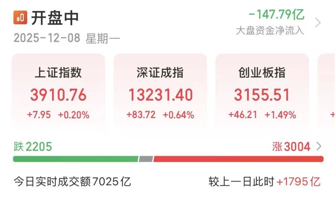 12月8日早盘,A股三大股指高开高走,截至发稿,沪指涨0.2%,深证成指涨0.64%创达盈配资,创业板指涨超1%。全市场上涨个股超3000只。